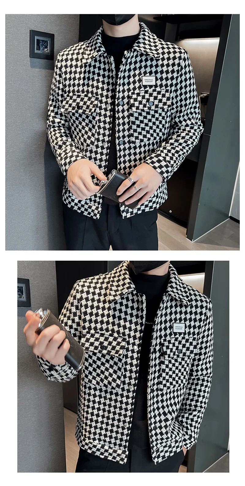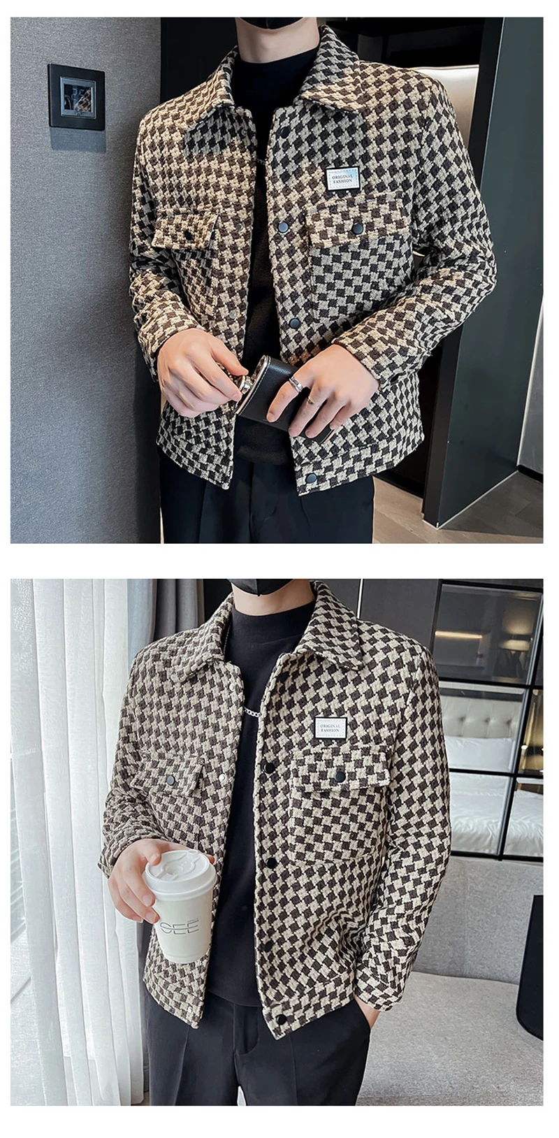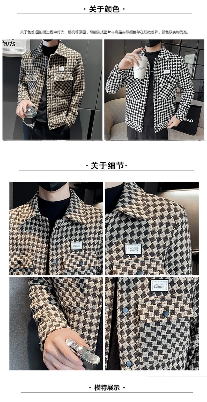 2023 Brand Clothing Men spring High Quality Casual Plaid Jackets/Male Slim Fit Fashion Lapel British Style Coats Hombre S-3XL