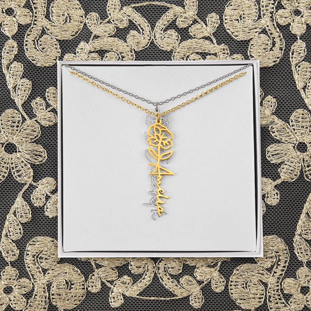 Need a gift that's as unique as she is? Then look no further than our Flower Name Necklace! With a customizable birth flower design, this necklace is a meaningful addition to any jewelry collection. Whether you're dressing up for a special occasion or simply want to add some flair to your everyday look, this necklace is perfect for your special someone. Handcrafted from high-quality materials, it is both stylish and durable. So why wait? Personalize your own floral name necklace today!