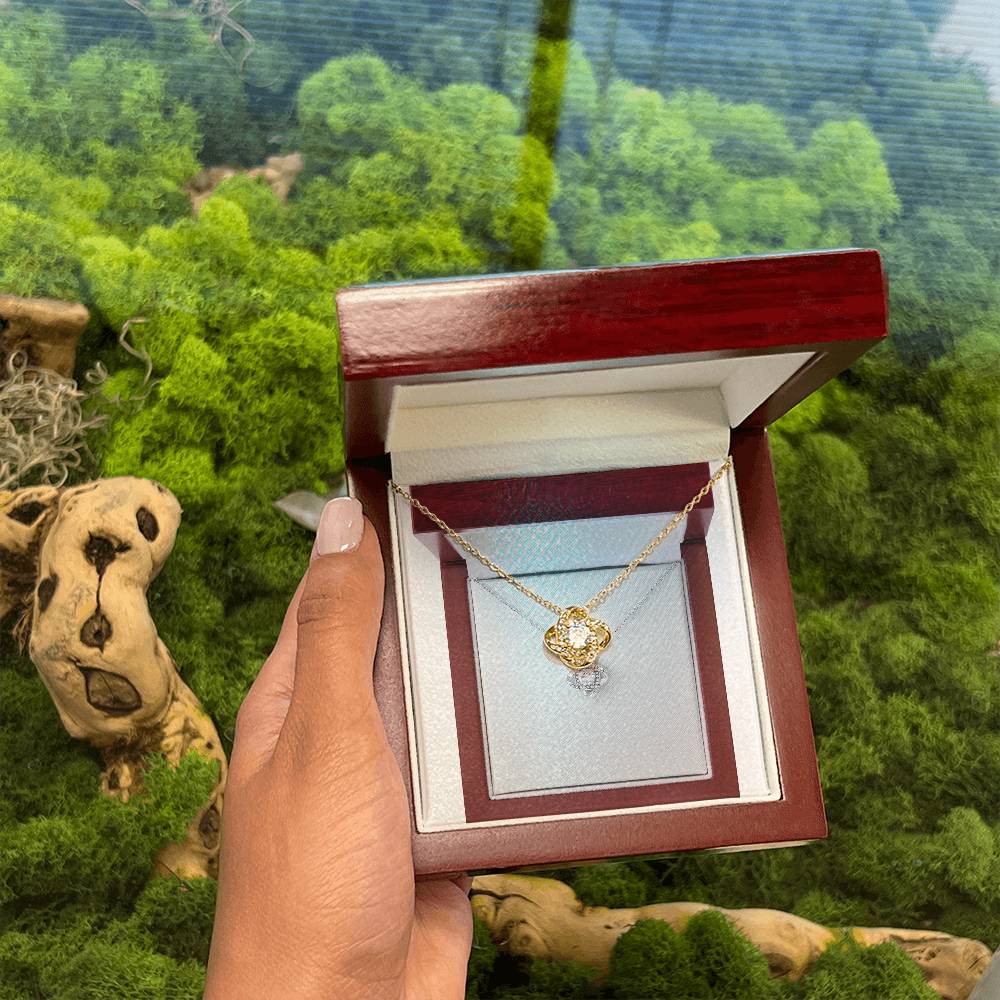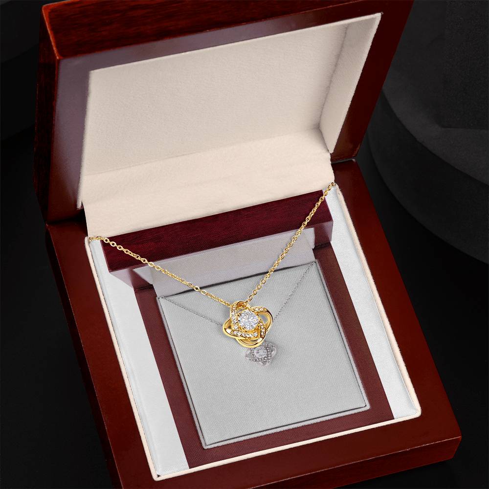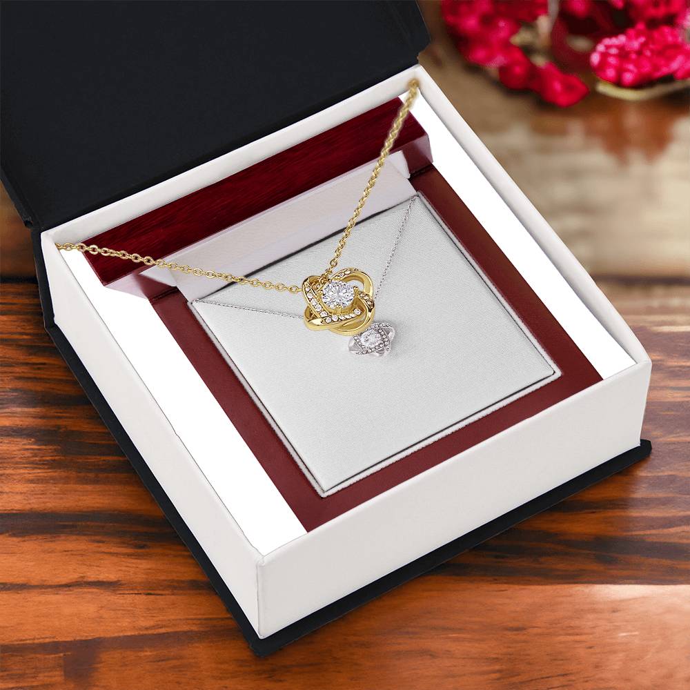 Imagine her reaction receiving this beautiful Love Knot Necklace. Representing an unbreakable bond between two souls, this piece features a beautiful pendant embellished with premium cubic zirconia crystals. Surprise your loved one with this gorgeous gift today!