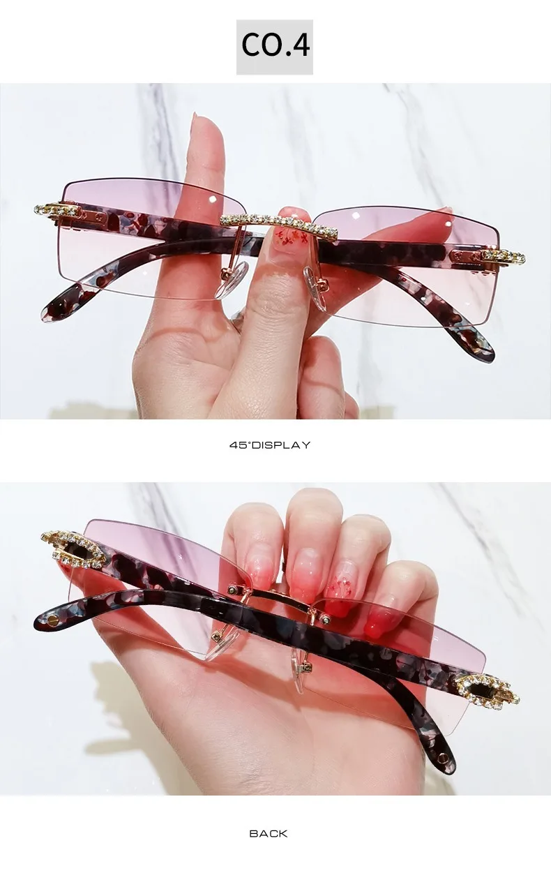 2022 New style luxury diamond rectangle sun glasses personality small frame square women