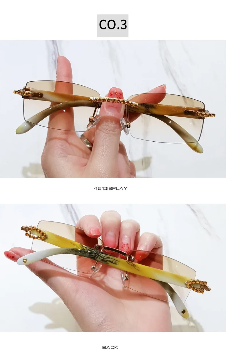Wholesale 2023 Custom Men Ivory Color Buffalo Horn Shape Fashion Small Square Sun Shades Glasses Trendy Rimless Sunglasses Women